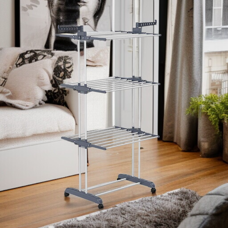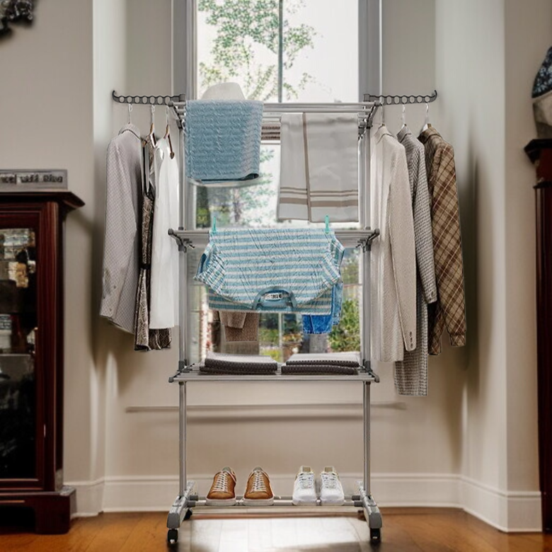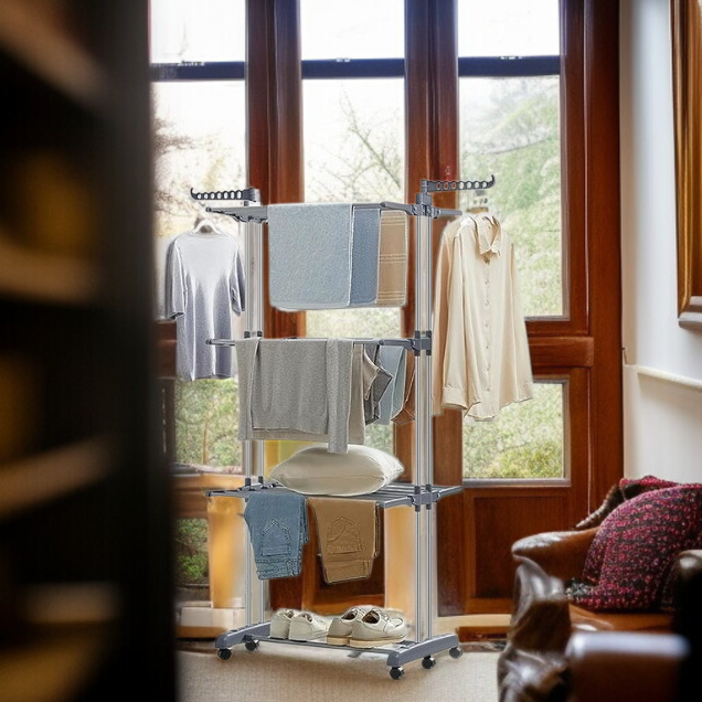 ● 多層設計有效提升晾曬空間,輕鬆容納全家衣物,讓晾衣更有條理不混亂。